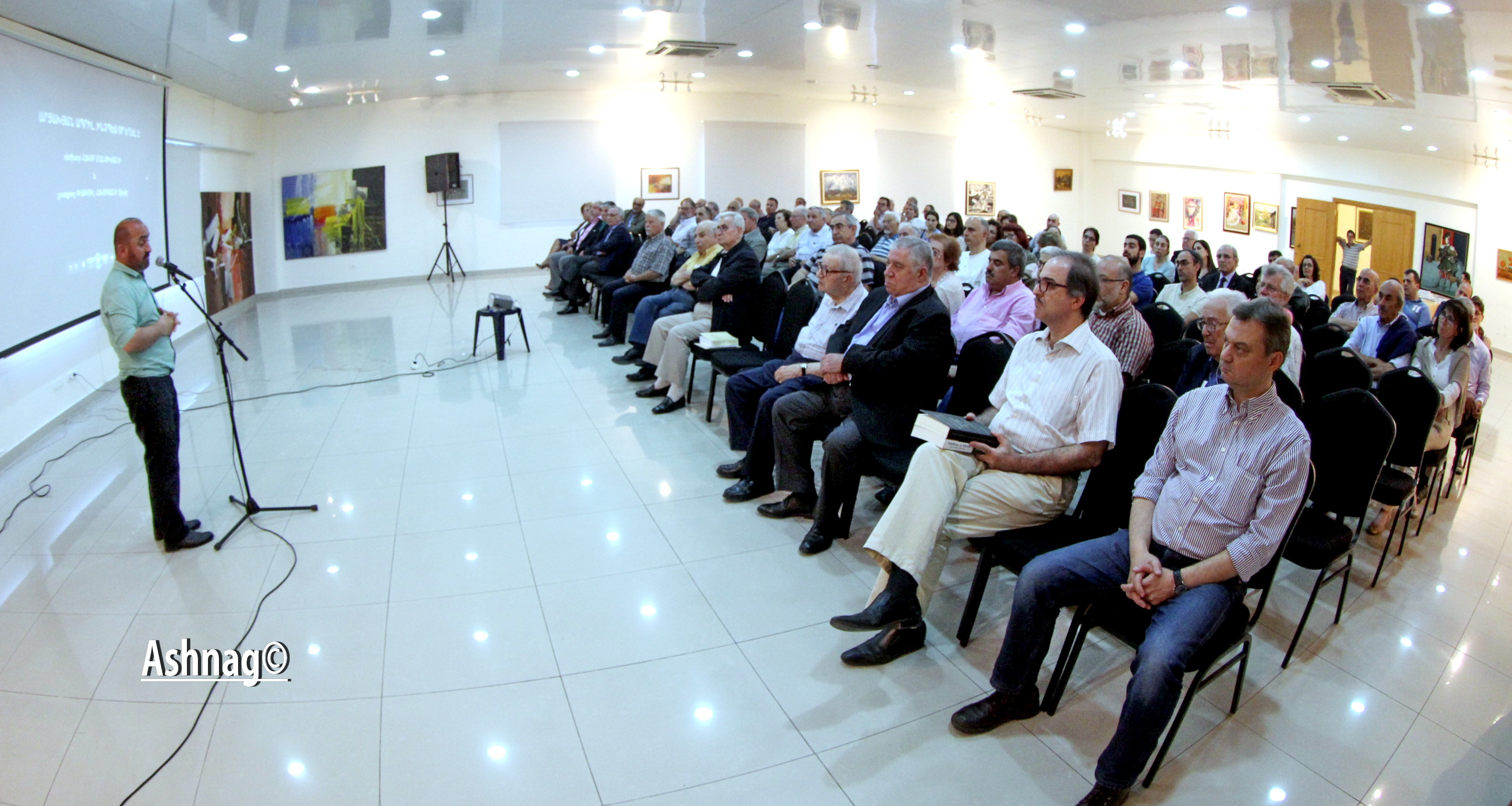 «Ազդակ» օրաթերթի «Փյունիկ» սրահում կազմակերպված միջոցառումը մարդաշատ էր: Նախ ցուցադրեցի ՍիվիլՆեթի նկարահանված կադրերով Արցախյան չորսօրյա պատերազմի մասին ռեժիսոր Հակոբ Մանուկյանի պատրաստած ժապավենը, կարճ պատմեցի ռազմական գործողությունների, պատերազմական առասպելների ու քաղված դասերի, Ռուսաստանի դերակատարության մասին, ապա պատասխանեցի ներկաների բազմաթիվ հարցերին: