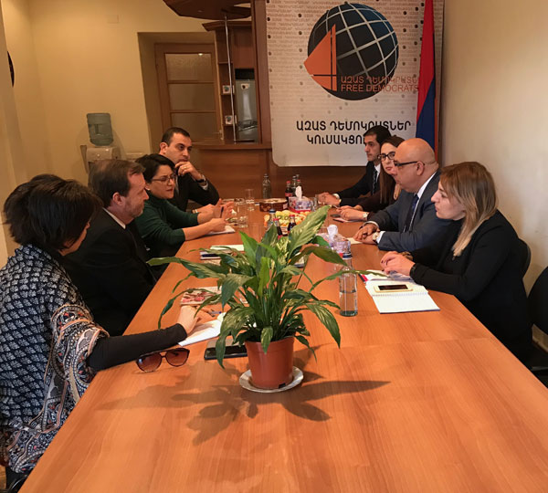 Հանդիպման ընթացքում քննարկվել է Հայաստանում առաջիկա խորհրդարանական ընտրությունները և ներքաղաքական իրավիճակը, ասվում է Ազատ դեմոկրատներ կուսակցության լրատվական ծառայության տարածած հաղորդագրության մեջ: