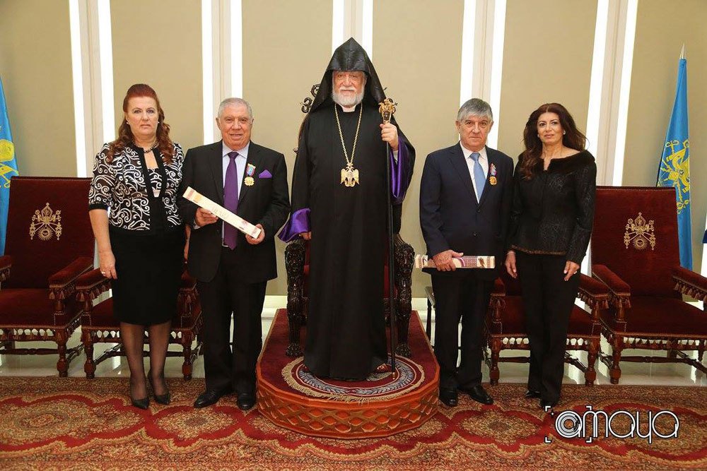 Արամ Ա Վեհափառ Հայրապետը «Ասպետ»-ի Շքանշանով Կը Պարգեւատրէ Նազարէթ Եւ Պետիկ Սապունճեան Եղբայրները
