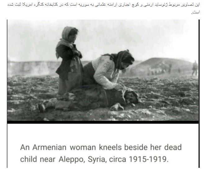 «Ցուցահանդեսում ներառվել է չոր այրող անապատում իր մահկանացուն կնքող մի կնոջ պատկեր, մինչ Խոջալուն գտնվում է Աղդամի և Ասկերանի միջև կիսալեռնային ցուրտ և ձնապատված մի տարածքում: Լուսանկարի հետազոտությունը պարզեց, որ այն պատկանում է Օսմանյան կայսրությումում հայերի՝ դեպի Սիրիա, Հալեպ բռնագաղթին, որը վերցվել է ԱՄՆ կոնգրսի գրադարանից և գրադարանի լուսանկարների ցանկում նկարը կարելի է գտնել նույն վերնագրով»: