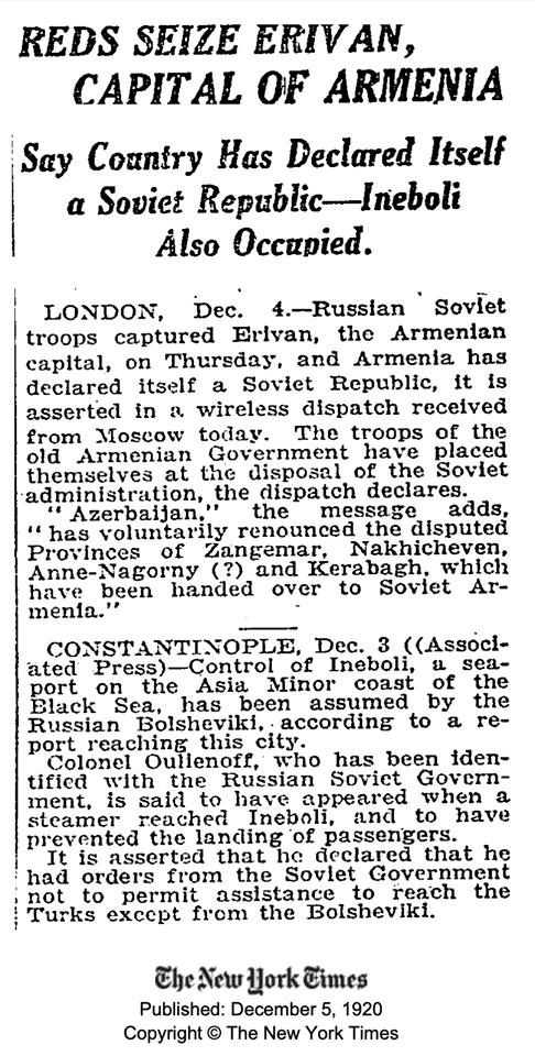 Reds Seize Erivan, Capital of Armenia – The New York Times, December 5, 1920