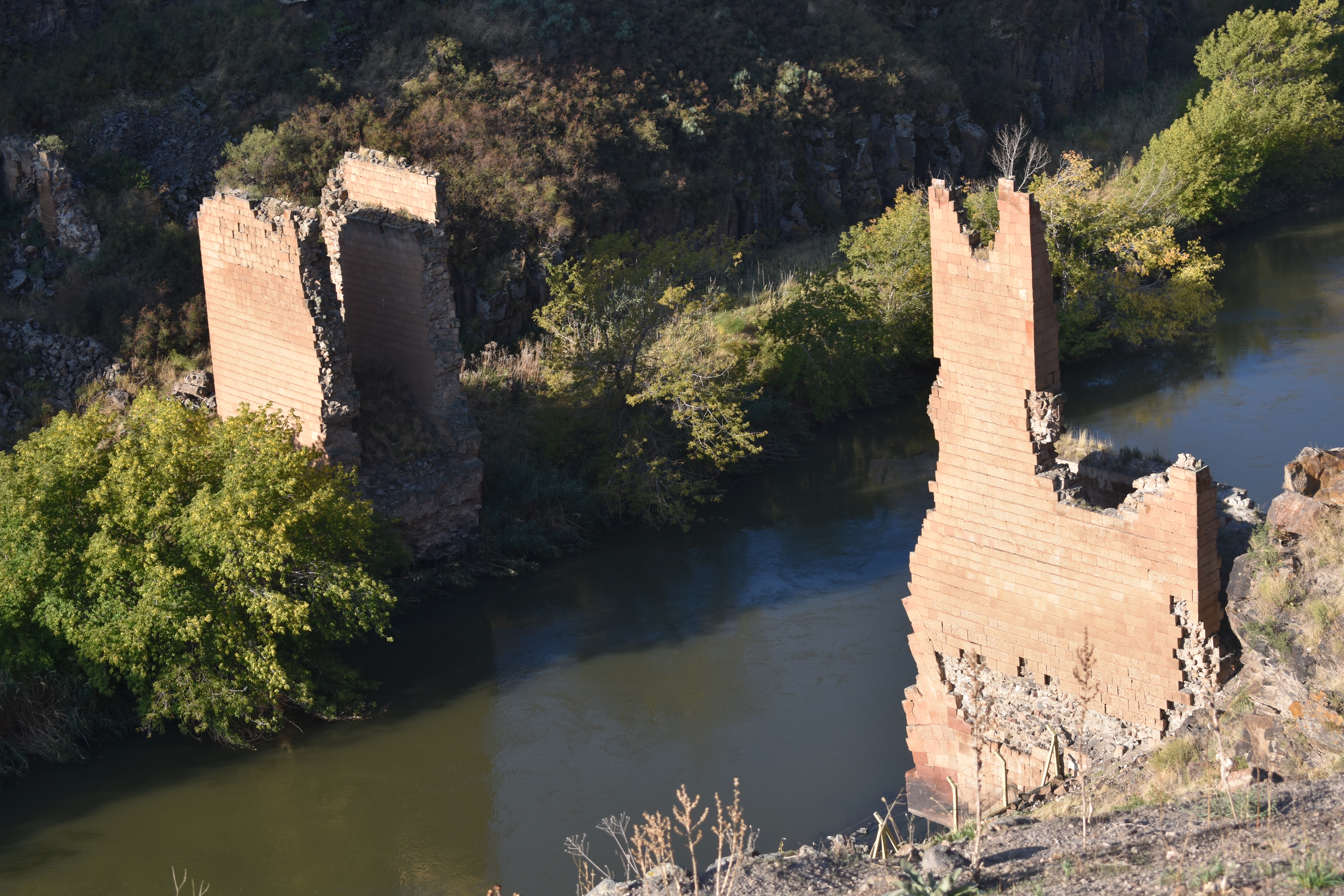 The future great scientist worked in Ani’s archaeological depository, totally absorbed. This structure, built by Ashot Voghormats, is an antiquity in itself. It is perched on the right edge of the Akhuryan gorge and with its tall and wide windows looks down at the turbid waters of the river that winds and coils like a snake in the deep, sinuous gorge.