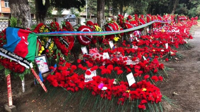 Женщина, бродившая по кладбищу, рассказала Би-би-си: “У меня никто тут не лежит, никто из этих ребят мне не сын по крови, но все они — наши сыновья, все — наши погибшие герои. Я сама родом из Карабаха, выросла там. И мне очень жаль, что парни гибнут в этой войне, но они герои, и их кровь пролилась не зря. Мы верим в победу и ждем, что снова сможем ходить по своей земле в Карабахе”.