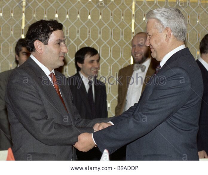 21-го августа 1992 г. Ельцин принимает Тер-Петросяна в Кремле, подписывается соглашение о дислокации на территории Армении частей российских вооруженных сил.