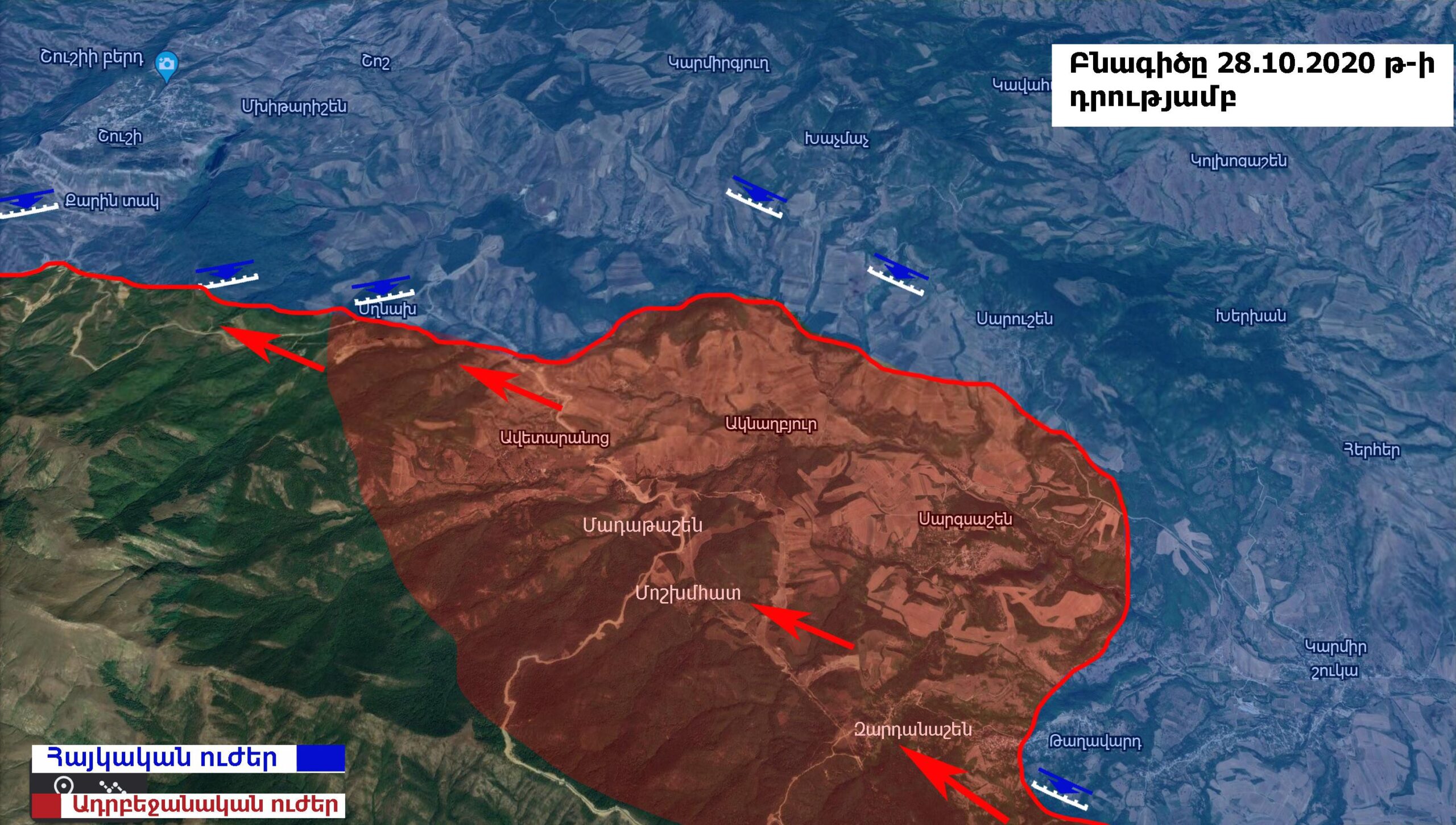 Հոկտեմբերի 29-ի դրությամբ ադրբեջանական ուժեն արդեն վերահսկում էին Մոշխմհատը, Մադաթաշենը, Ակնաղբյուրը, Ջրաղացները, Ավետարանոցը, Սղնախը։
