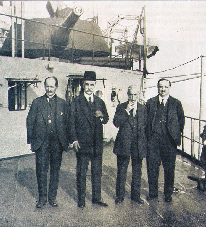 Լուսանկարում – Դամադ Ֆերիդ փաշան՝ ֆեսով, Սևրի պայմանագիրը ստորագրած երեք թուրք գործիչների հետ՝ նրանից աջ՝ Ռըզա Թեվֆիկ, նրանից ձախ՝ կրթության նախարար Բաղդաթլը Հադի փաշա, և դեսպան Ռեշադ Հալիս: Դաշնակիցների նավով նրանք ուղևորվում են Փարիզի Խաղաղության խորհրդաժողովին մասնակցելու